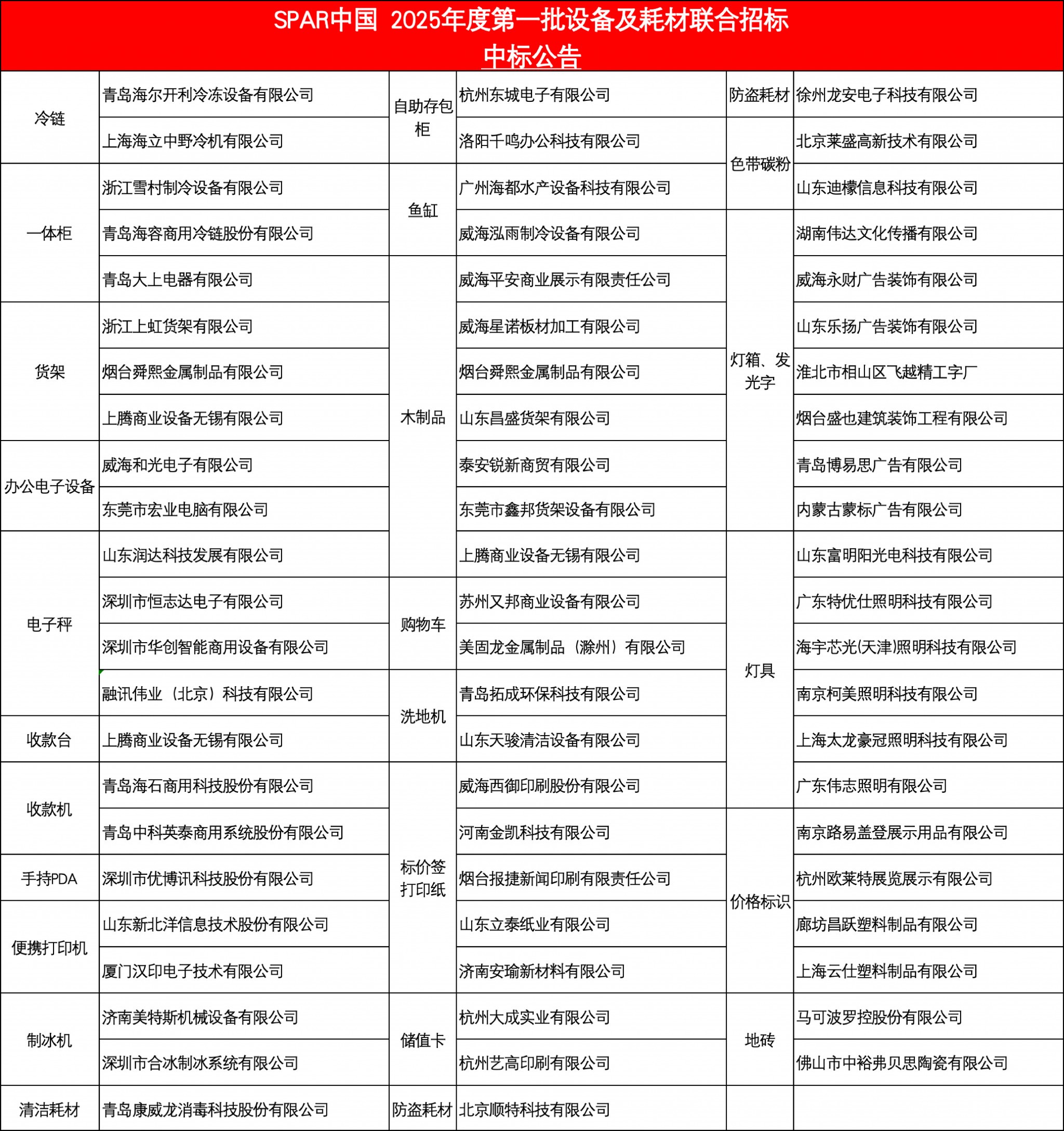 SPAR中国2025年度 第一批设备及耗材联合招标 中标公告